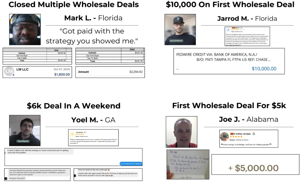Nathan has closed deals across multiple U.S. markets and has worked directly with wholesalers to help structure, negotiate, and close real transactions.